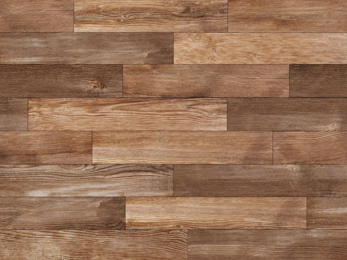 Photographic layer mimics the look of a real wood floor; may show patterns |